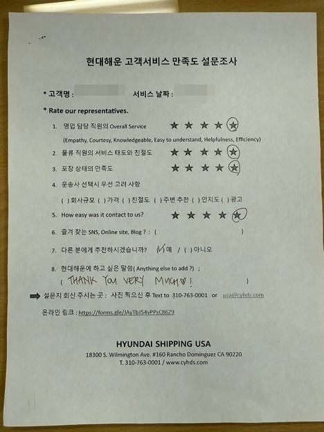 현대해운은 고객님의 소중한 의견을 반영하여 최상의 서비스를 제공할 수 있도록 노력하겠습니다.